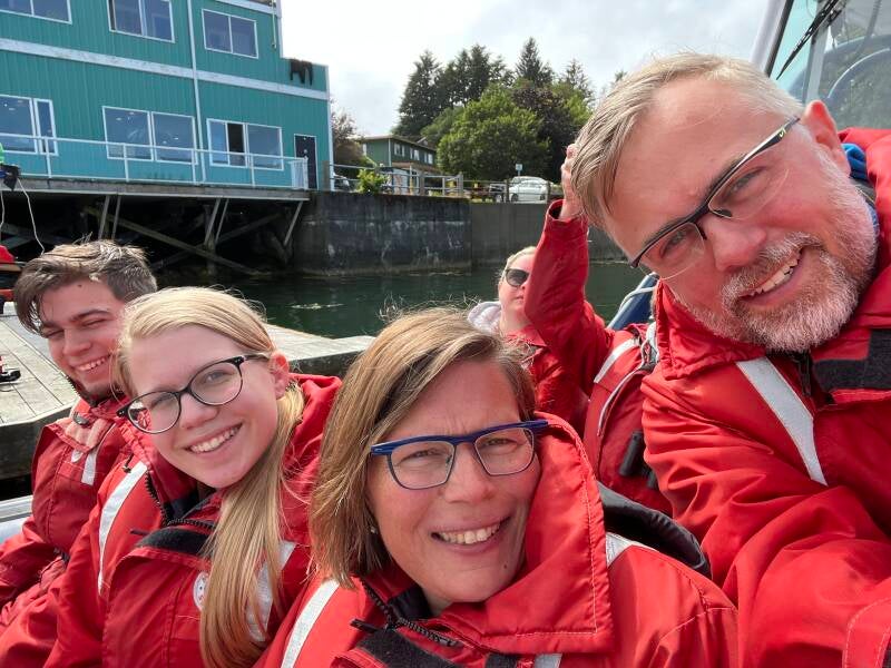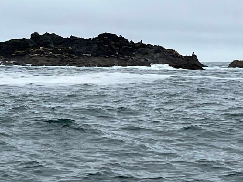 De middag stond in het teken van het zeeleven. Met een snelle zodiac opzoek naar walvissen. Wat hebben wij wel gezien: bold eagles, zeehonden, zee leeuwen, meeuwen, seagulls, zee otters en ook een het met twee jongen langs de kant.