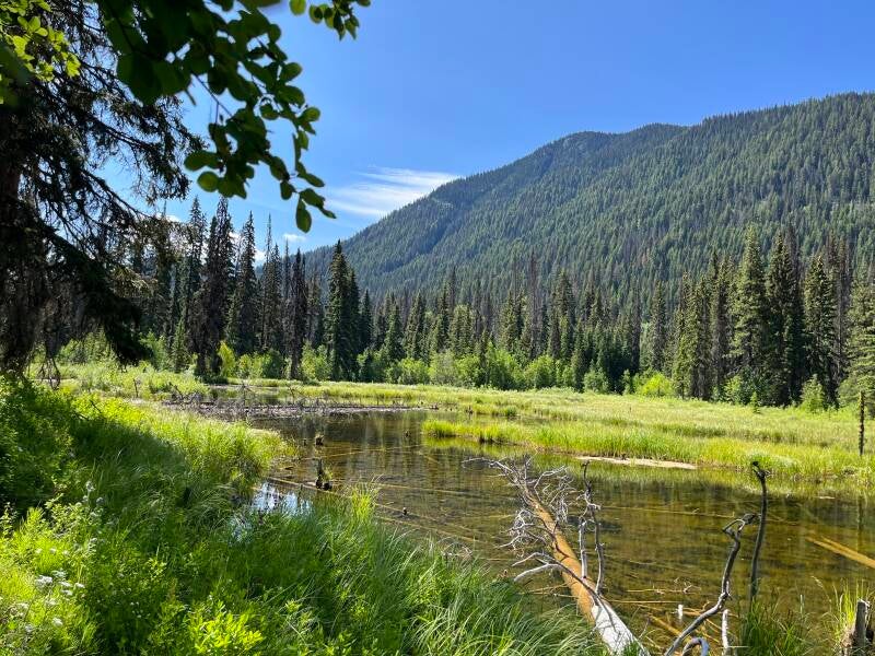Na dit uitzichtpunt door gegaan naar de Beavers natural bridge, oftewel een moeras waar de bevers een burcht hadden gemaakt. Geen bever gezien waar wel weer de achterkant van een hert.