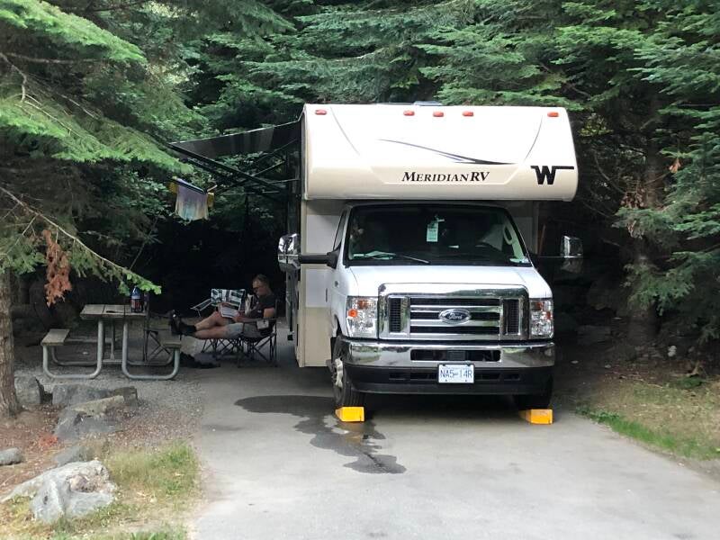 Rond 17:30 op de camping Riverside, fijne plek onder de bomen. Wel ff de airco aan om af te koelen. Eerst maar gebruik gemaakt van wasmachine en droger voor weer wat schone sokken en ondergoed. Snel pan pasta maken daarna douchen, insmeren tegen de muggen,relaxen en daarna bedje in.